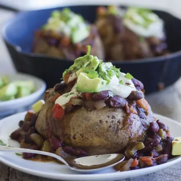 Chili-Loaded Baked Potatoes with Cashew “Sour Cream”